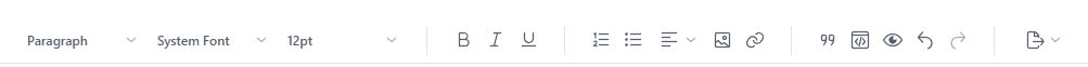 Mark text as a block quote, show the HTML of the page, preview your article, or undo/redo your most recent action, and